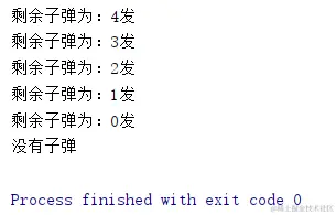 print("剩余子弹为:%d发" % self.弹夹)