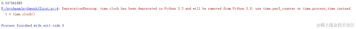 警告:时间。时钟已在python 3.3中取消,并将从python 3.8中移除。