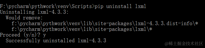 我先把我装好的lxml删除示范一下