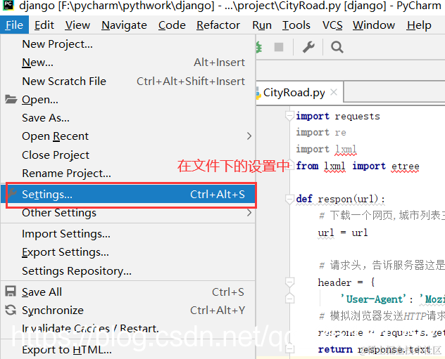 打开pycharm的设置