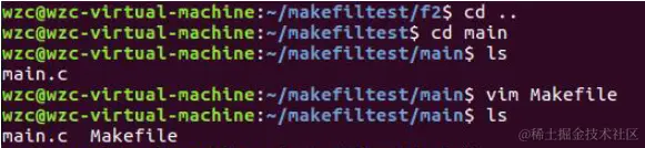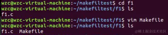 6、在f1文件夹下使用vim创建Makefile文件。