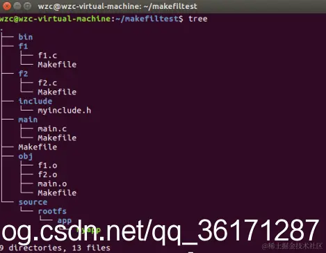 首先在用户目录下创建 makefiletest 文件夹;创建好需用到的其它文件夹f1,f2,main,obj,include等5个文件夹。