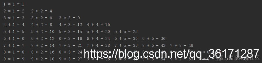print("%d * %d = %d\t" %(i,j,i*j),end="")