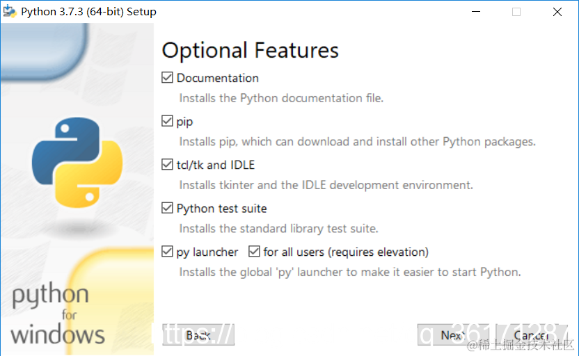 下载后,双击下载包,进入 Python 安装向导,安装非常简单,你只需要使用默认的设置一直点击"下一步"直到安装完成即可。