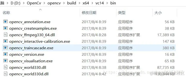 三、找到自己下载的OpenCV文件夹,打开opencv,打开build,打开x64,打开vc14,打开bin文件夹。