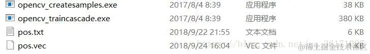 选择opencv_createsamples.exe和opencv_traincascade.exe两项,将其复制到需要的文件夹中,与negdata、posdata并列。