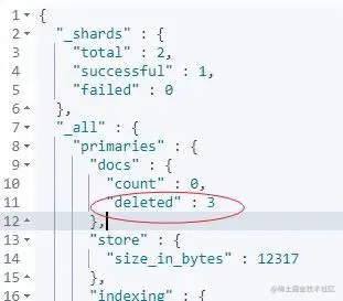此时,我们再通过 _stats API 发现:deleted 显示为 3。