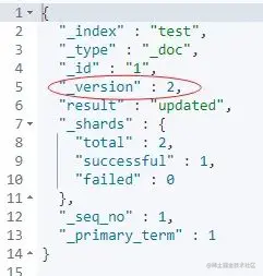 再次写入文档相当于对原有文档执行更新全更新操作,_version 由 1 变成 2。