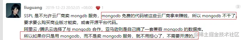 当初 MongoDB 推出新的开源协议 SSPL 的主要目的是为了限制阿里巴巴、腾讯和 Yandex 等云服务提供商的使用,MongoDB CEO 点名说:“一旦某个开源项目变得备受关注或大受欢迎,云供应商就很容易攫取所有价值,却不给予开源社区任何回报。”