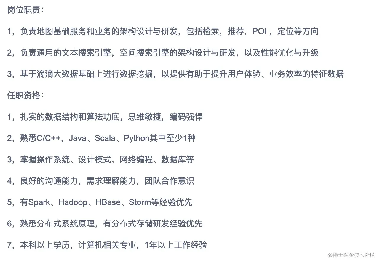 了解了什么是大数据,接下来介绍一下大数据开发这一岗位,先直接上岗位描述(JD:Job Description)给大家感受一下。然后来说明一下大数据开发工程师的主要工作,最后再来总结一下需要掌握的技能。