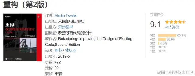 本书讲述了为什么和怎样对既有代码的设计做出改善。第一章还是一如既往的烂,第二章泛泛而谈。不过第三章,第五章和可以快速浏览的第六到第十二章都颇有价值。本书此次再版采用 JavaScript 改写,但是跟第一版一样,我不推荐去读里面的代码,太冗余了,而且很难跟读者的实际情况共鸣。应该从经手的实际的代码出发,阅读《重构》提出的手法的动机和做法,在实践中尝试。这样,才是最好的使用这本书的方法。重构的重点不在于真的去掌握什么技巧,更重要的是去思考你的工作,思考你的代码。