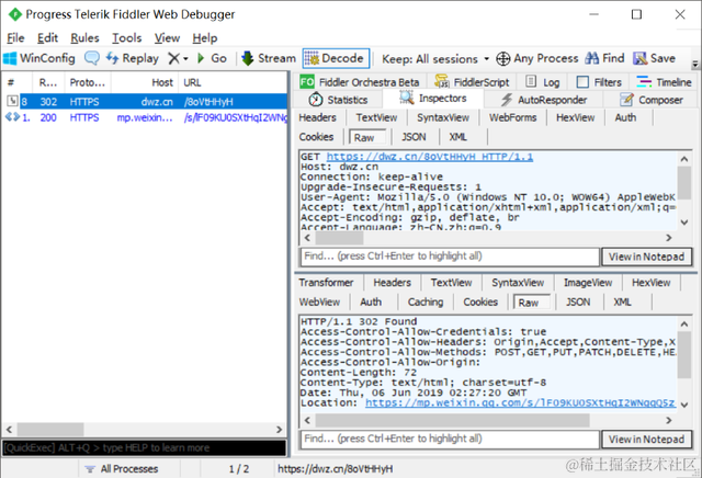 图2-32 Fiddler抓包短链接
