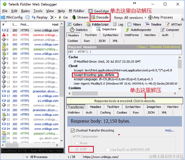 图2-3 Fiddler选中Decode按钮