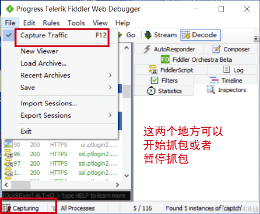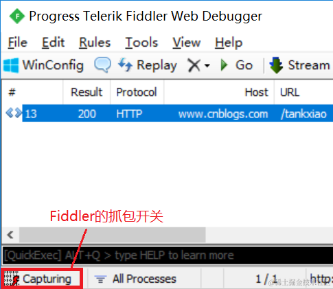 图2-8 Fiddler的抓包开关