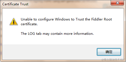 有时候会碰到Fiddler安装证书不成功的情况,如图2-13所示。