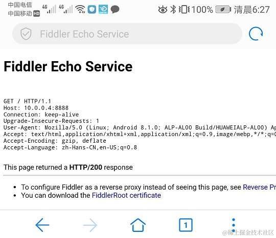 只有Fiddler证书网站能打开,才能说明手机和计算机的网络是通的。再去修改手机上的代理设置,Fiddler才能对App进行抓包。