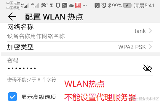 如果有两个手机,一台计算机,那么就可以抓包了。一个手机当成热点,另外一台手机和计算机都使用这个热点上网,手机的代理就可以指向计算机了。