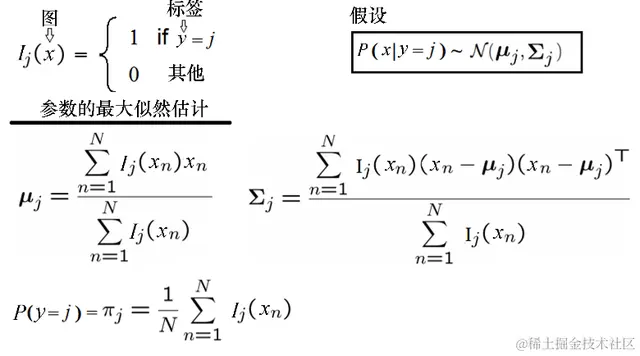 这意味着π是10×1、μ是10×784、∑是10×784×784的矩阵。最大似然估计(Maximum Likelihood Estimates,MLE)为经验估计,如图9-17所示。