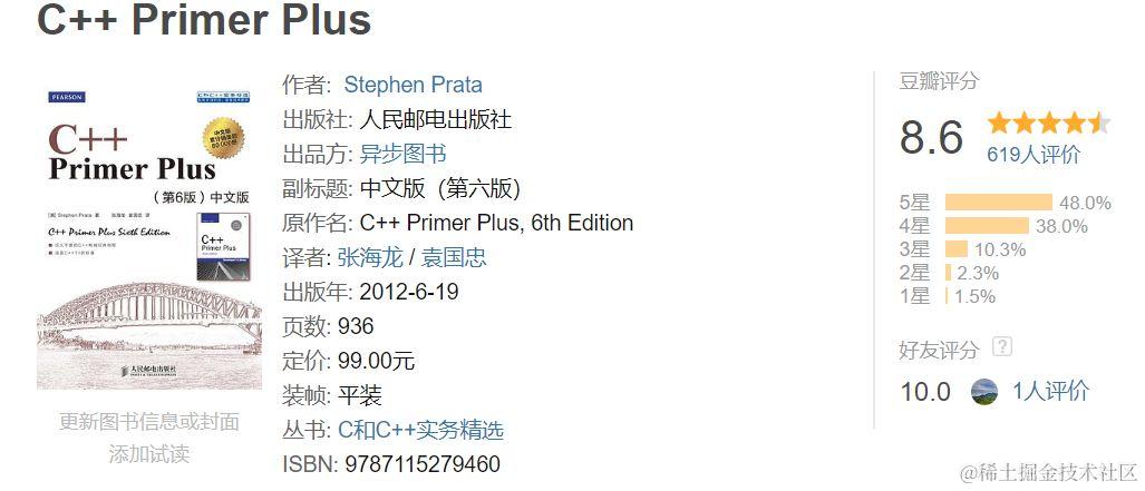 C++ Primer Plus(第6版)中文版豆瓣评分8.6