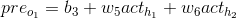 最后,我们将逼近预激活项o1的变化和w5有多大关系。预激活项是权重和输入项的线性组合,如公式12.13所示: