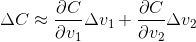 表示C对于v1的偏微分。为了方便,我们将Δv1和Δv2表示为一个向量,如公式12.2所