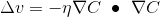 在公式12.5中,η是一个称为学习速率的超参数。我们替换Δv来阐明为什么ΔC是负数,如公式12.6所示: