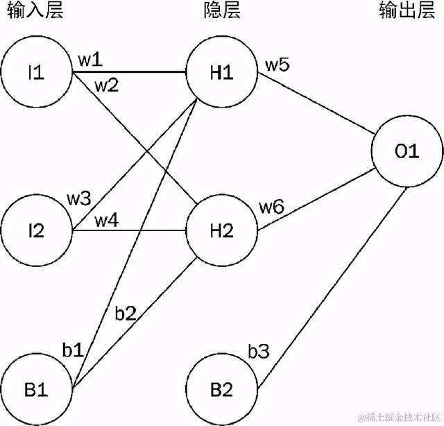 的乘积来更新w5的值。接着我我们可以遵循同样的处理方式来更新剩余的权重。完成了第一次向后传递之后,我们可以使用更新后的权重值来再次通过网络向前传播。