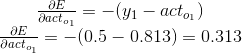 是输出神经元oi的激活项,yi是响应变量的真实值。我们的网络只有一个输出单元,因此n等于1。网络的预测值是0.813,响应变量的真实值是0.5,因此误差是0.313。现在我们可以更新权重w5。首先计算