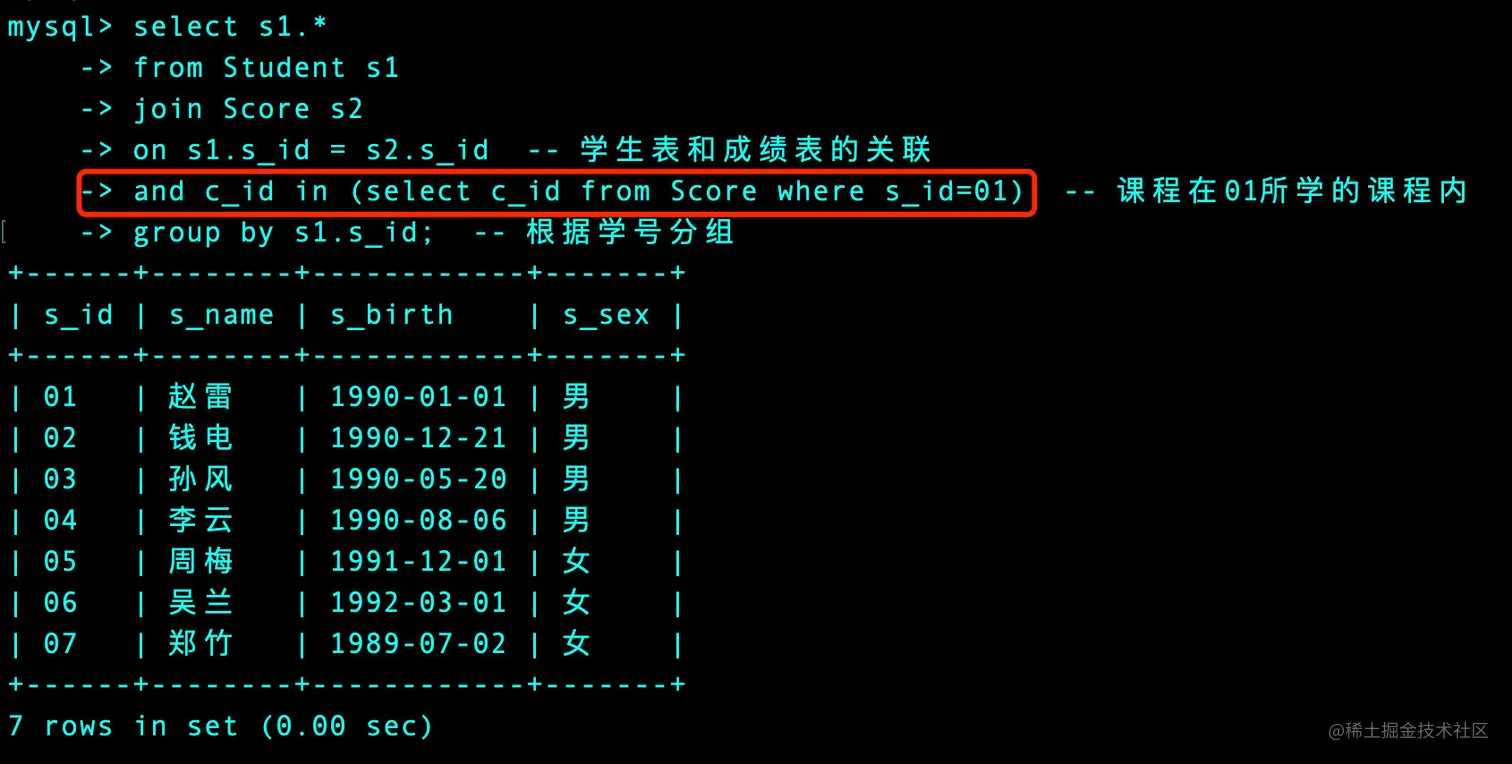 group by s1.s_id; -- 根据学号分组
