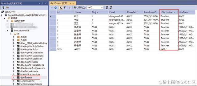 Student实体与Teacher实体均继承自Person类,它们不用单独声明ID主键及Name与Email属性值,而是直接复用Person类中的属性代码。