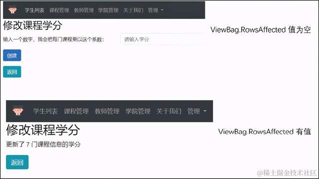 更新了 @ViewBag.RowsAffected门课程信息的学分
