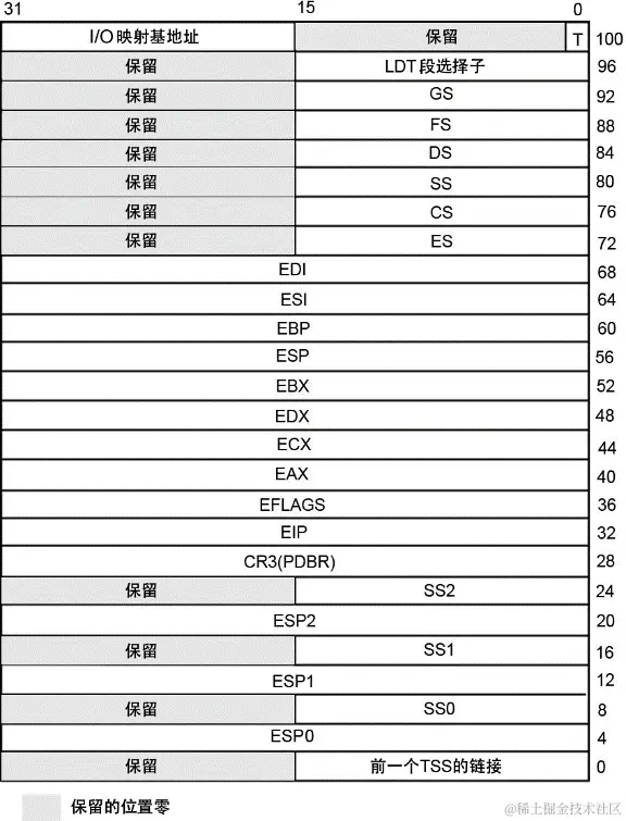 图11-2 32位的任务状态段(TSS)