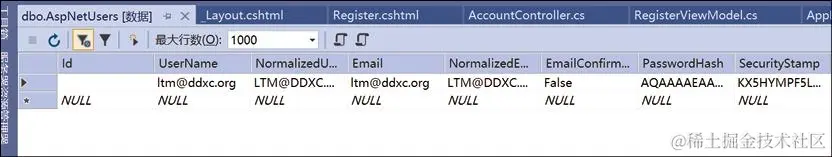 - 如果读者希望存储有关注册用户的其他信息,比如性别、城市等,则需要创建一个派生自IdentityUser的自定义类。在此自定义类中添加所需的其他属性,然后插入此类而不是内置的IdentityUser类。我们将在后面的章节中学习如何执行此操作。