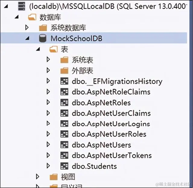 - 因为IdentityDbContext提供了管理SQL Server中的Identity表所需的所有DbSet属性,所以将看到ASP.NET Core Identity框架中要生成的所有数据库表。