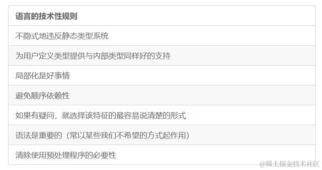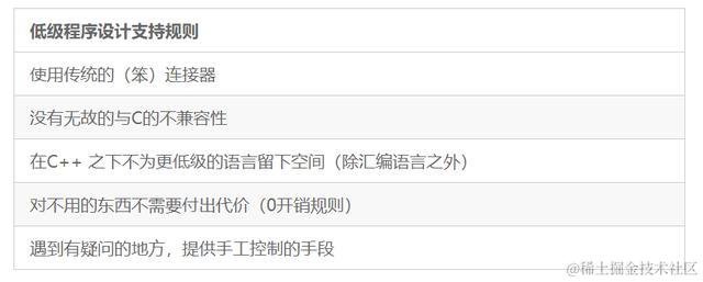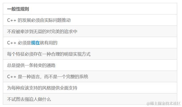 这些规则指导着与语言特征有关的各项工作。当然,改进设计的大框架是由C++ 的基本设计目标提出来的。
