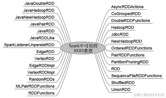Spark中有许多可用的RDD类型,可以简化编程。图3-2描述RDD的部分分类情况。建议Spark程序员至少知道现有的RDD类型,哪怕是RandomRDD、VertexRDD、HadoopRDD、JdbcRDD和UnionRDD等这些鲜为人知的RDD,以避免不必要的编码问题。