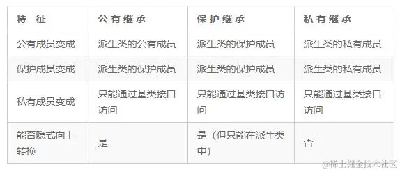 - 私有和保护继承;