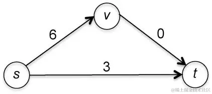 从s到t共有两条路径:直接路径(长度为-2)和经过两次跳跃的路径s→v→t(长度为1+(-5)=4)。