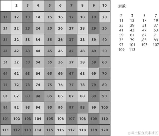图3.1 埃拉托斯特尼筛法
