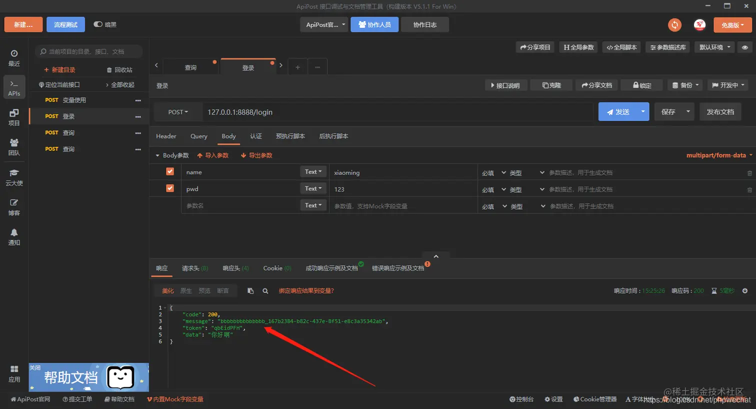 apipost还支持自定义断言,我们可以自定义响应中的某个值作为断言