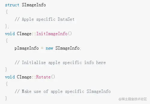 请注意,上述示例是执行此操作的一种方法。设计全部是关于讨论和需求的。决定好设计时要考虑到许多因素。我们还可以具有特定于平台的类,例如CImageWindows,CImageApple,并将所有特定于平台的代码放在此处。