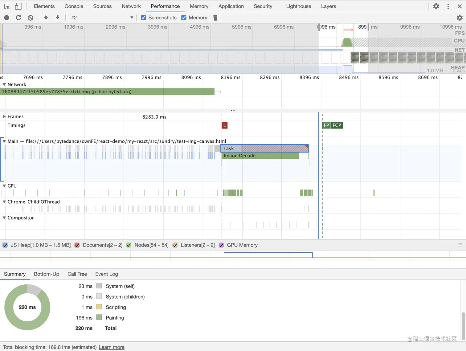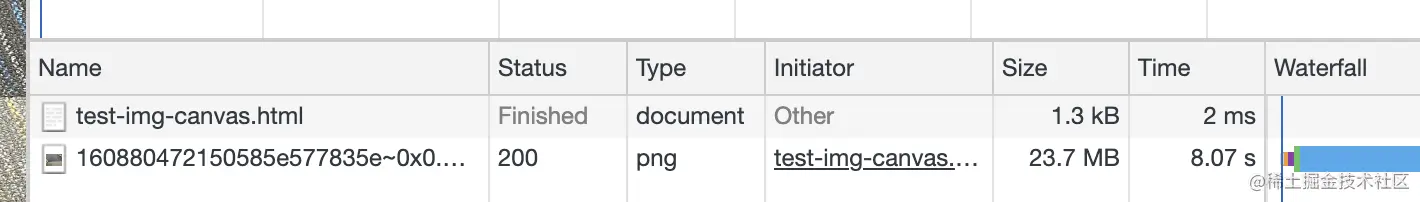 同一张23M大尺寸图片,使用img标签和canvas,加载和绘制性能的比较。