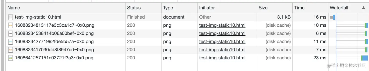 对于chorme图片缓存是放在disk cache中,以5张不同的图片为例: