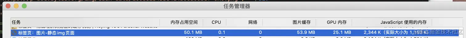 内存观察方式:通过chrome的任务管理器,查看当前tab的内存占用情况