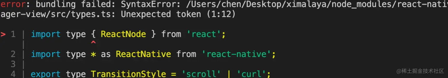 居然是语法错误。import type是什么鬼,它为啥要报错,哪里错了?