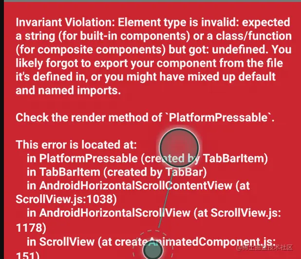 看下方,它让我去检查PlatformPressable,我再次去看了react-native-tab-view源码。找到了PlatformPressable文件,噢噢,糟糕了!