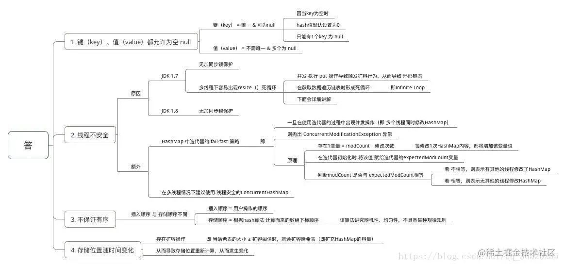- 线程安全:HashMap 是非线程安全的, HashTable 是线程安全的。