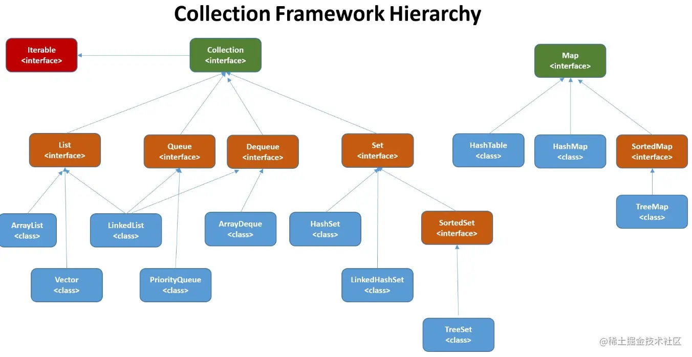 Java中的集合,从上层接口上看分为了两类,Map和Collection。Map是和Collection并列的集合上层接口,没有继承关系。