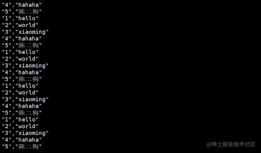 这时就可以查看数据了,kafka会打印mysql中的数据