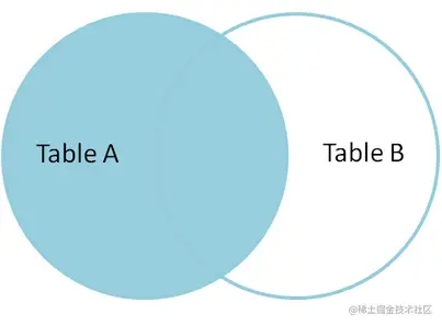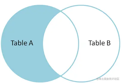 left join,(或left outer join:在Mysql中两者等价,推荐使用left join.)左连接从左表(A)产生一套完整的记录,与匹配的记录(右表(B)) .如果没有匹配,右侧将包含null。